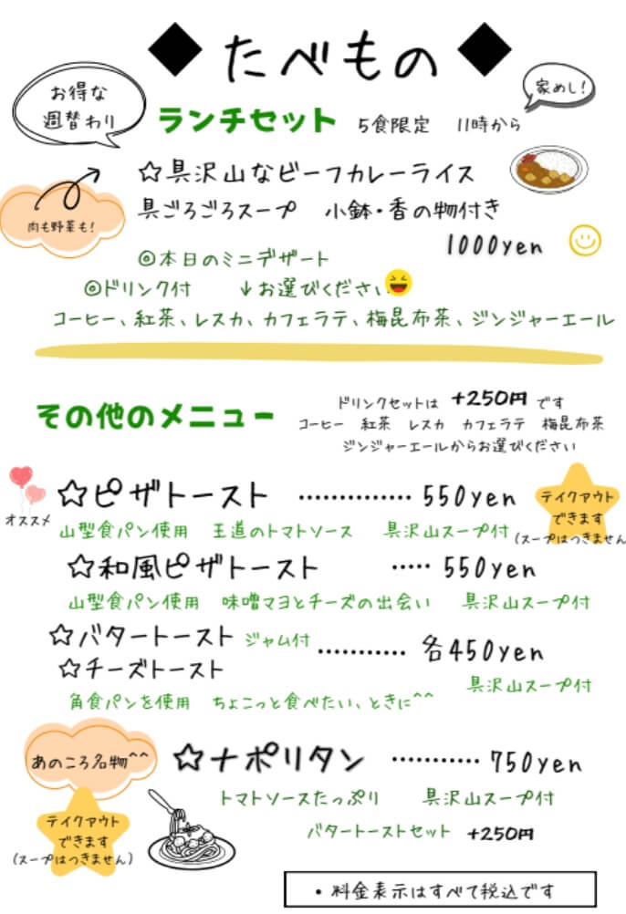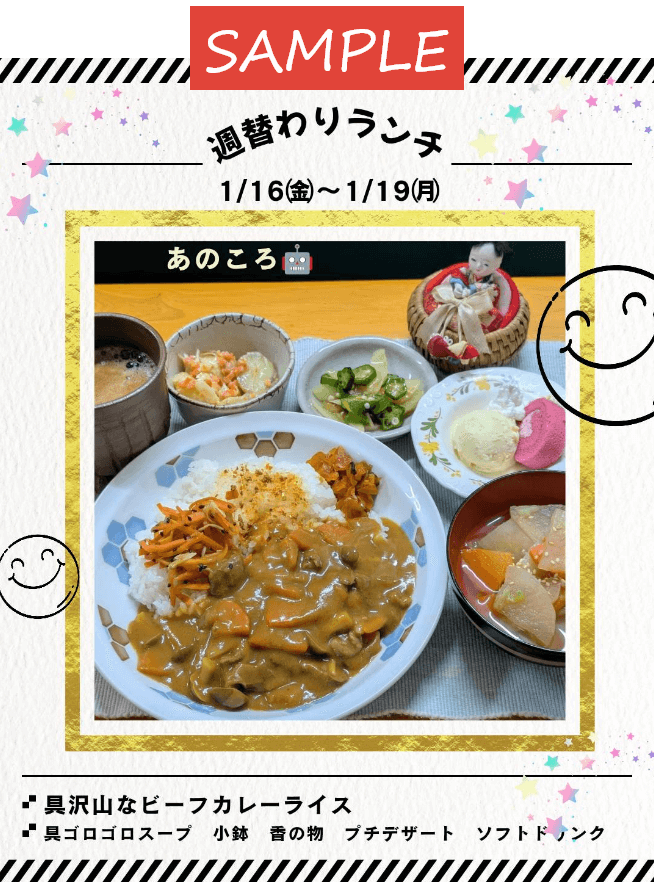 栄養たっぷり、おいしいなつかしい暖かなランチをご堪能ください。